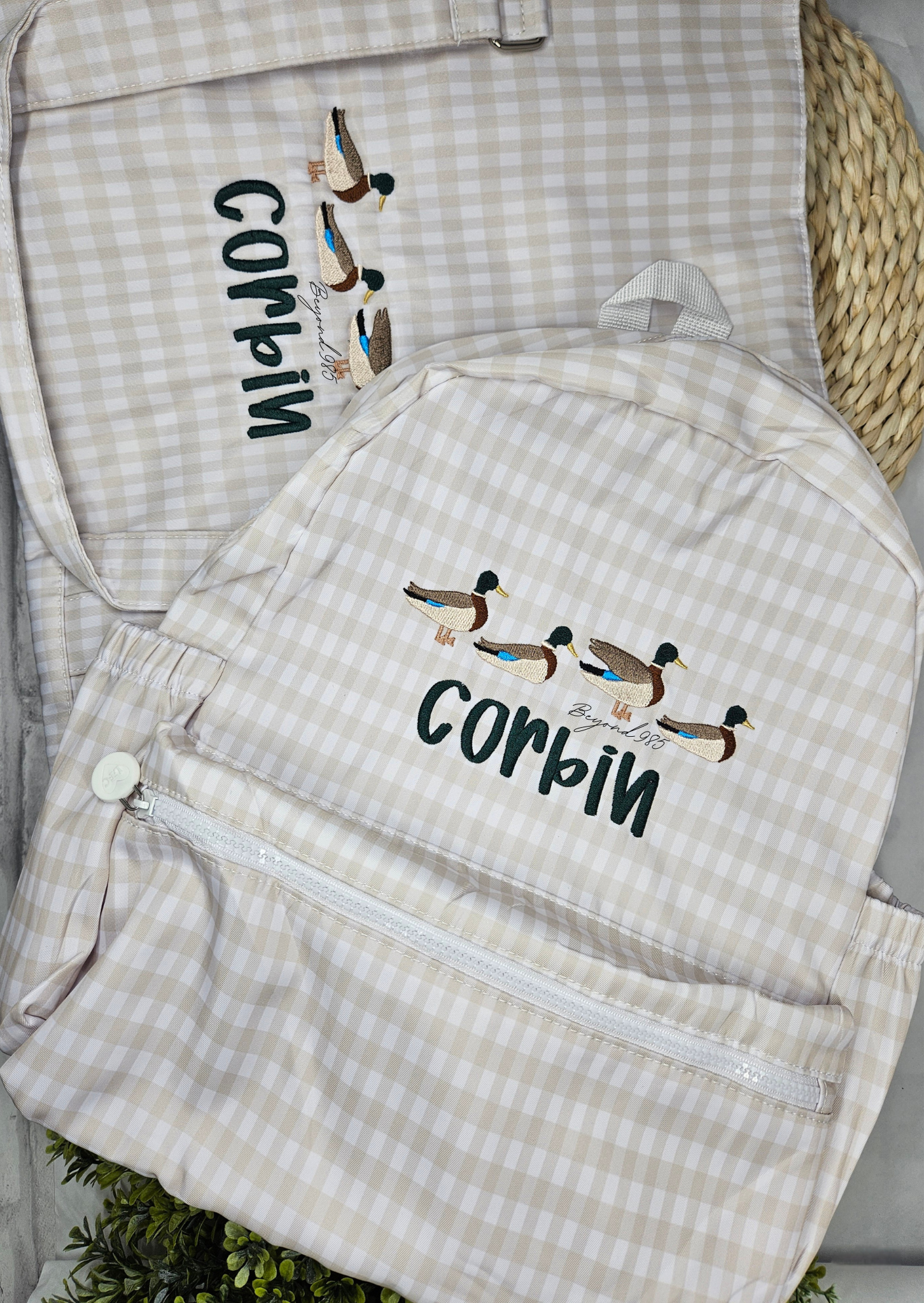 When selection the sets, please advise which size backpack you would like: toddler or full-size. If nothing is noted, the set includes a FULL SIZE BACKPACK.
